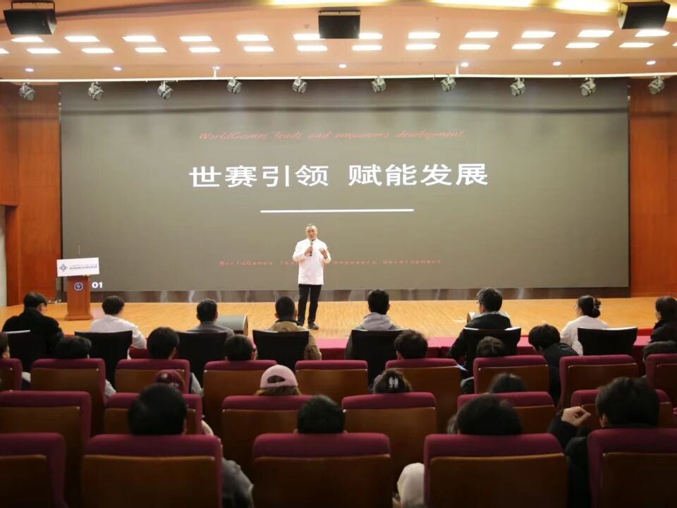 2025年11月25日下午,图文信息楼二楼报告厅座无虚席,西餐烹饪界重量级大咖陈刚大师应邀而来,为深耕专业的学子们献上一场集权威见解与实操精髓于一身的干货分享。以世赛标准为纲,融理论讲解与实操示范,个性化指导兼顾中西融合技艺,紧扣行业趋势,干货密集且落地性极强,是前沿行业视野与本土实践经验的灵感碰撞。